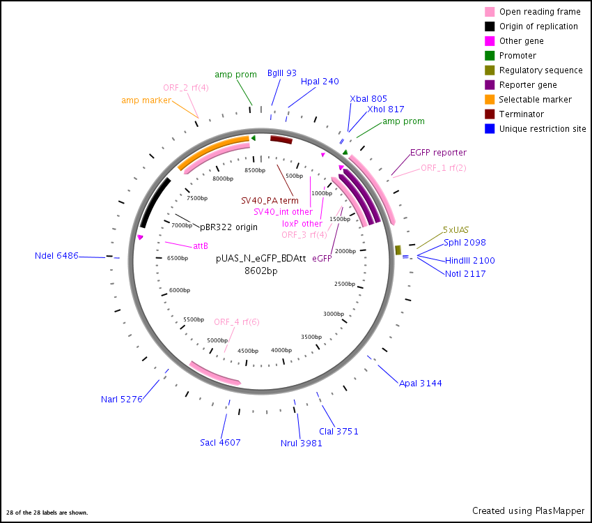 vector ORGANISM pUAS-N-EGFP-BD-attB vector)